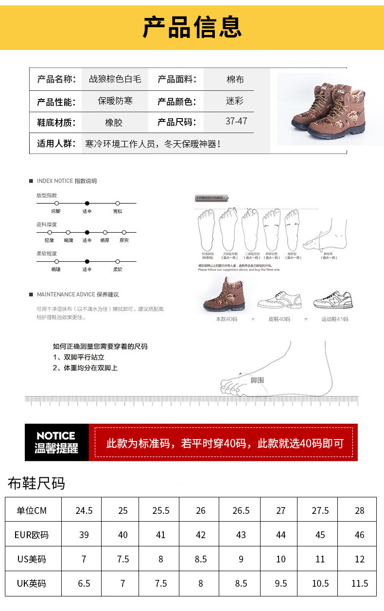 查看更多斯派尼护林员冬季防寒防滑耐磨里绒毛男式雪地靴