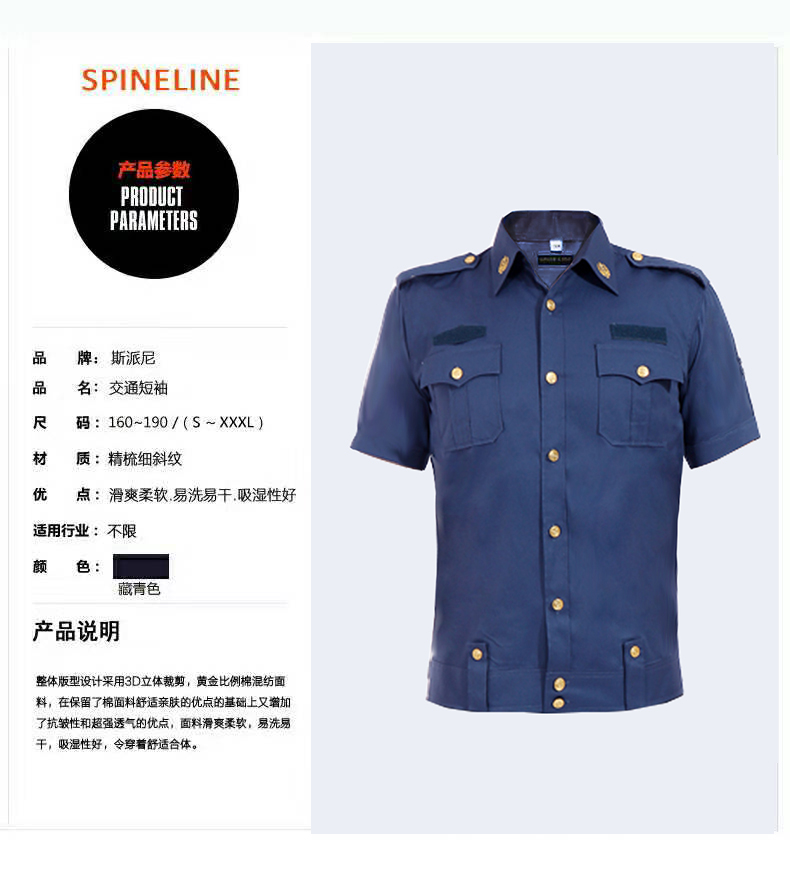 斯派尼交通执法夏季短袖衬衫上衣